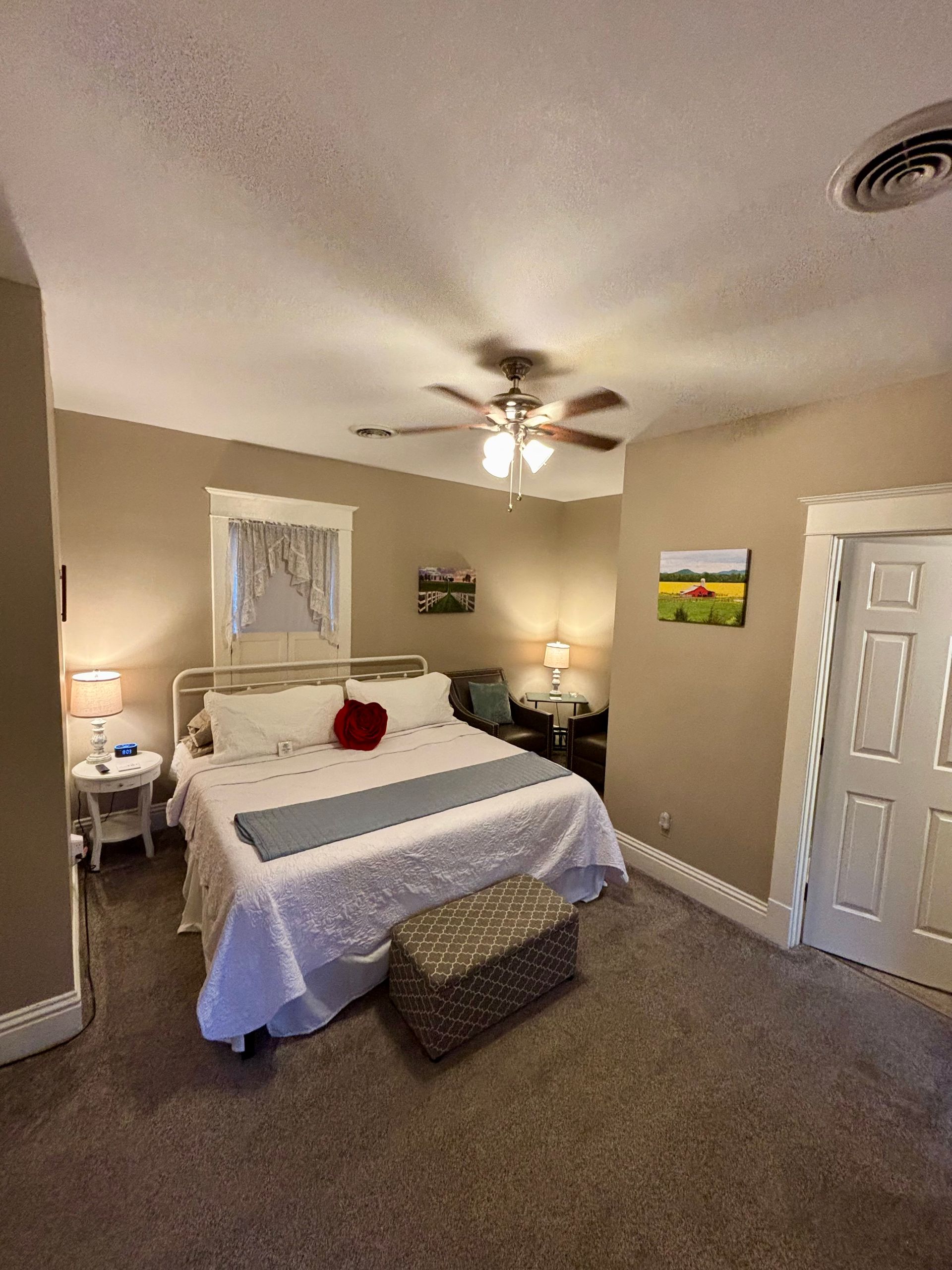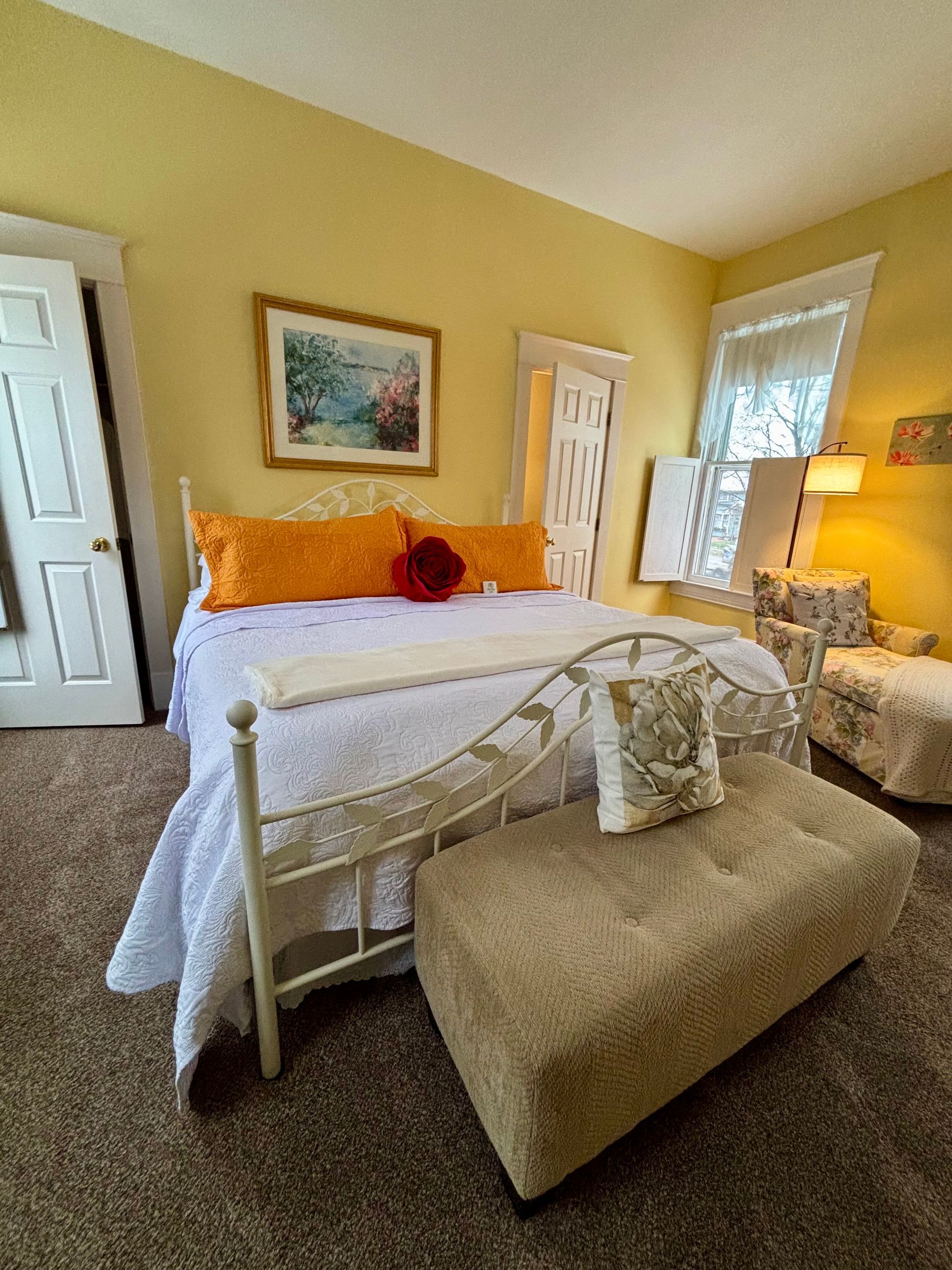 The Red Rose Inn offers four uniquely themed guest rooms, each designed with your comfort in mind. Featuring private bathrooms, modern amenities like Wi-Fi and cable TV, and inviting seating areas, our accommodations provide the perfect mix of historic charm and contemporary convenience for a truly relaxing stay.